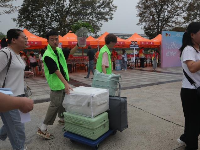 新生入校,“环”游校园:热情的学姐学长们自发在北门和新生登记点组成了新生欢迎队伍,通过介绍领路和接送行李来帮助新生们更快地熟悉校园。
