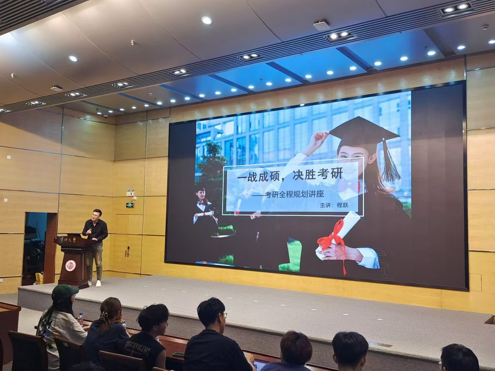 为了给即将踏上考研征程的22级学子加油鼓劲,304am永利集团官网联合城市建设学院于9月12日晚上6点在文彰楼报告厅举行“2022级本科生考研动员大会”。大会邀请了计算机与人工智能学院党委书记王峰教授、考研指导资深专家程跃作为主讲人,环境学院党委书记薛峰、副书记林凌敏及22级全体学生参加此次大会。